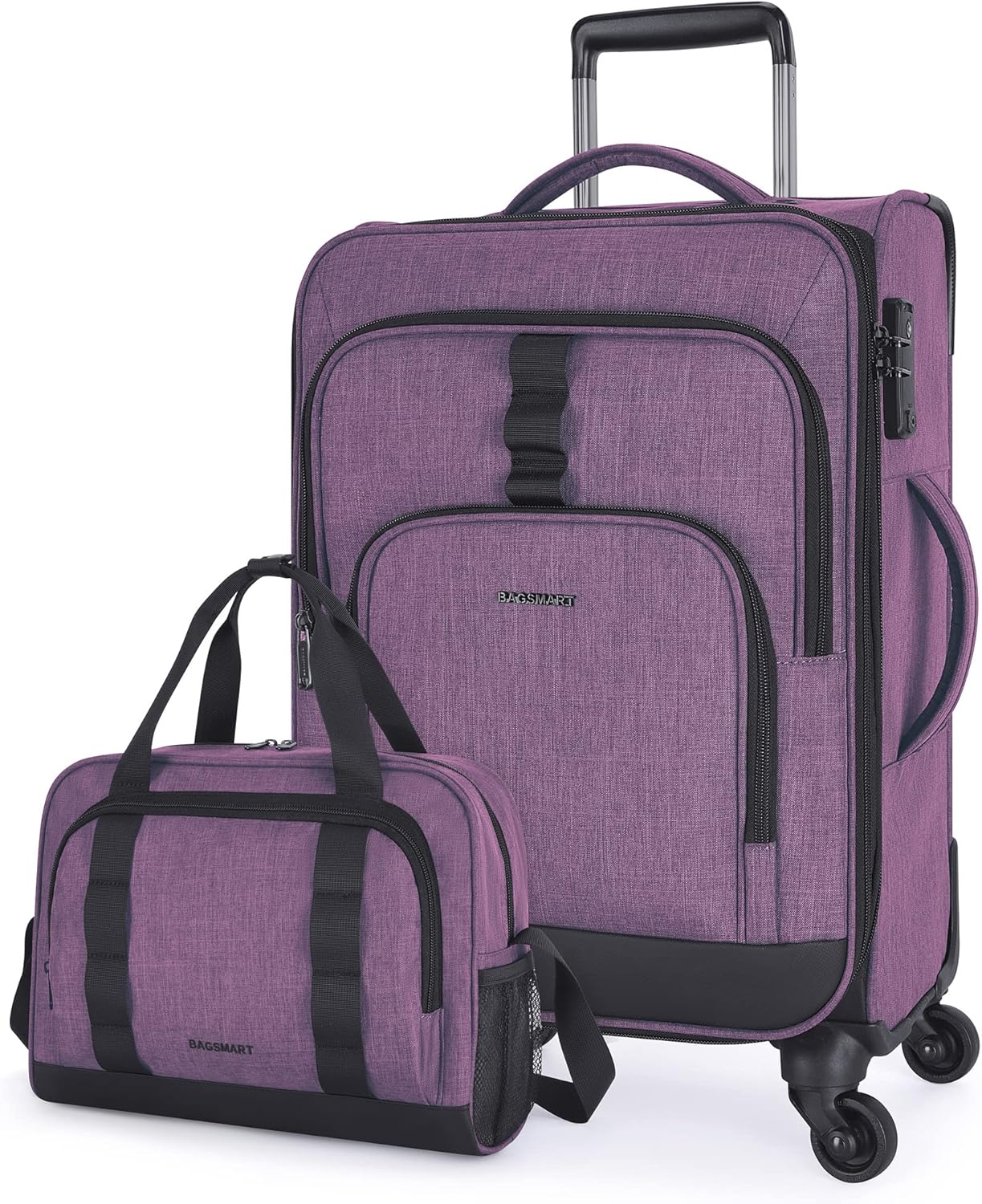 BAGSMART Expandable 20 inch Carry on Luggage Airline Approved, Lightweight Carry on Suitcase with Spinner Wheels, Family Travel Suitcase Set with Duffle Bag – Purple